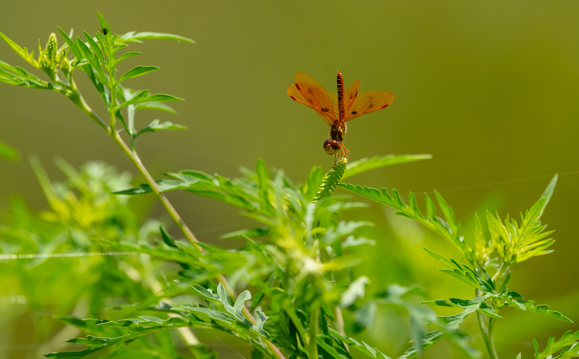 One of the larger dragonflies in this area is the Golden-winged Skimmer (Libellula auripennis).