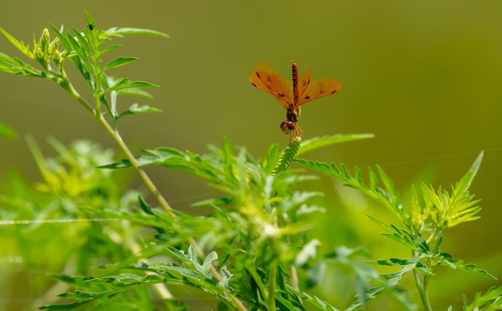 Another gold jewel of the dragons, a Halloween Pennant (Celithemis eponina) is, thankfully, a common sight in this area.