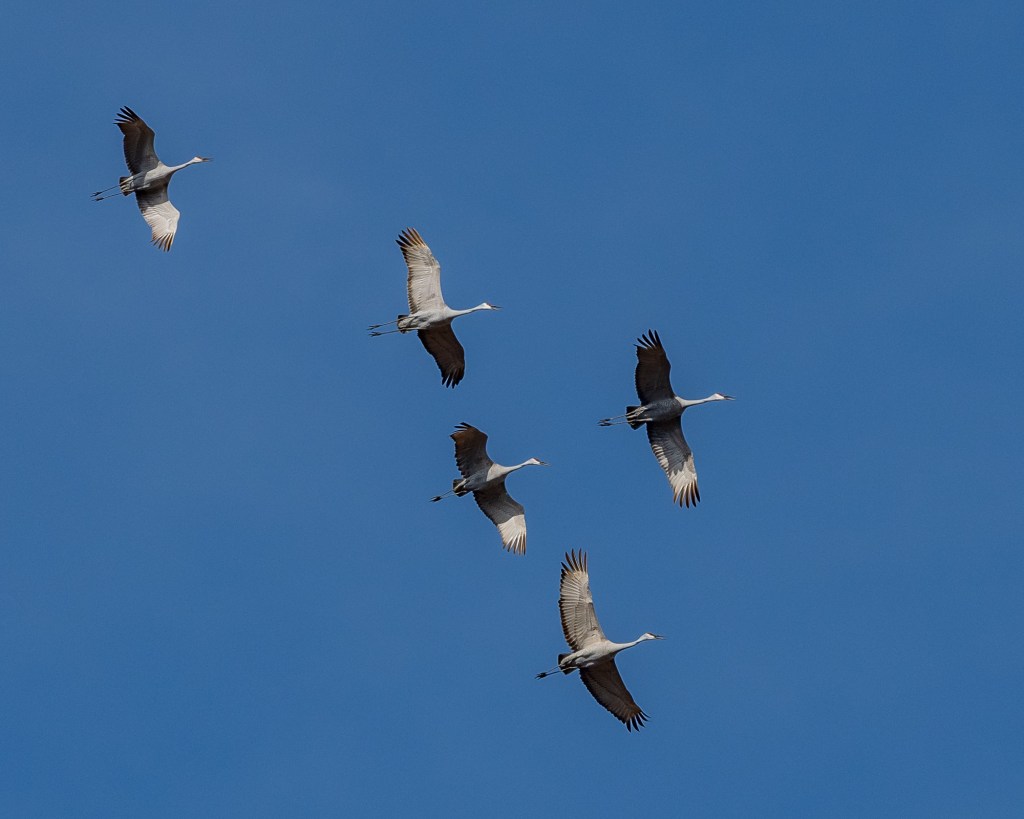 Trumpeting from the skies, a group of Sandhill Cranes headed northeast. They all appeared to be adults which means they are likely winter migrants. Florida has a resident subspecies but it is rare to see more than three or four individuals (family group) together.