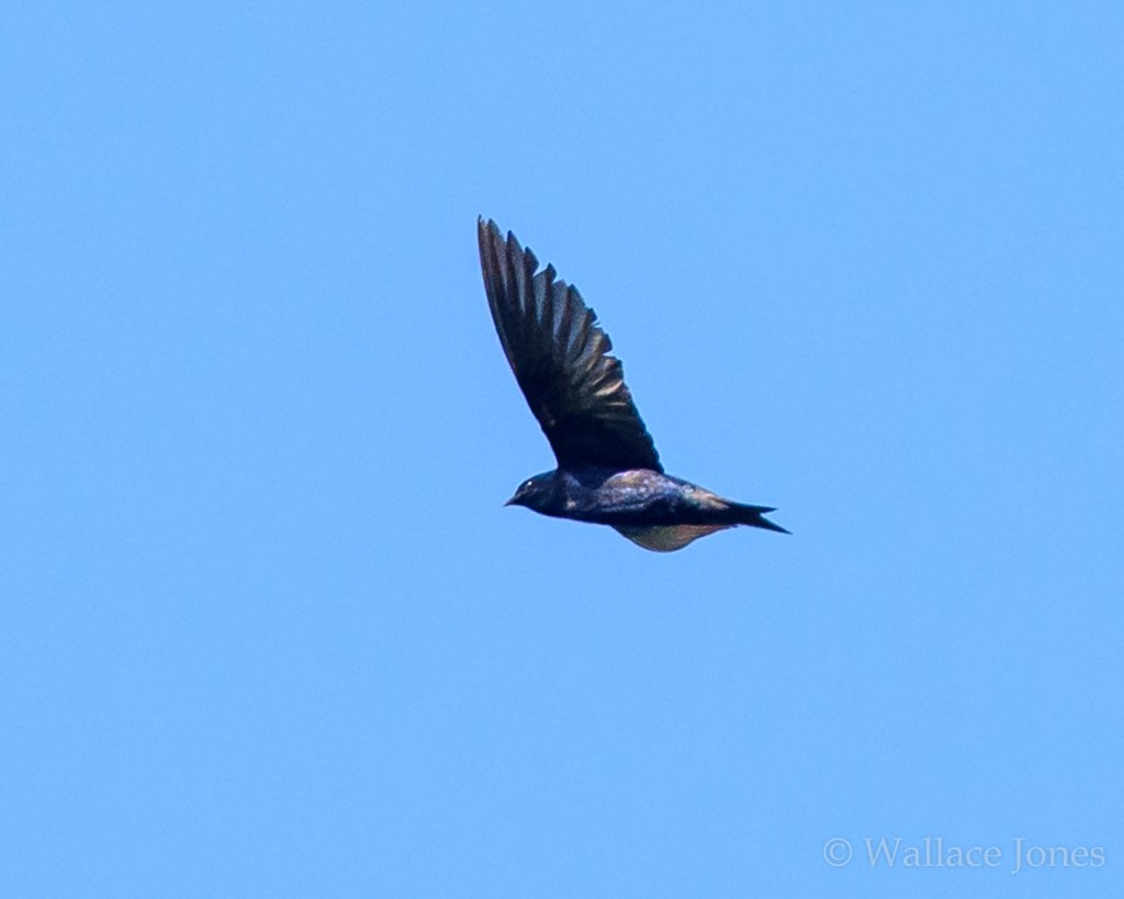 Purple Martins are North America’s largest swallows. This one joined a group of Barn Swallows as they swooped over Mac Lake snapping up flying insects.