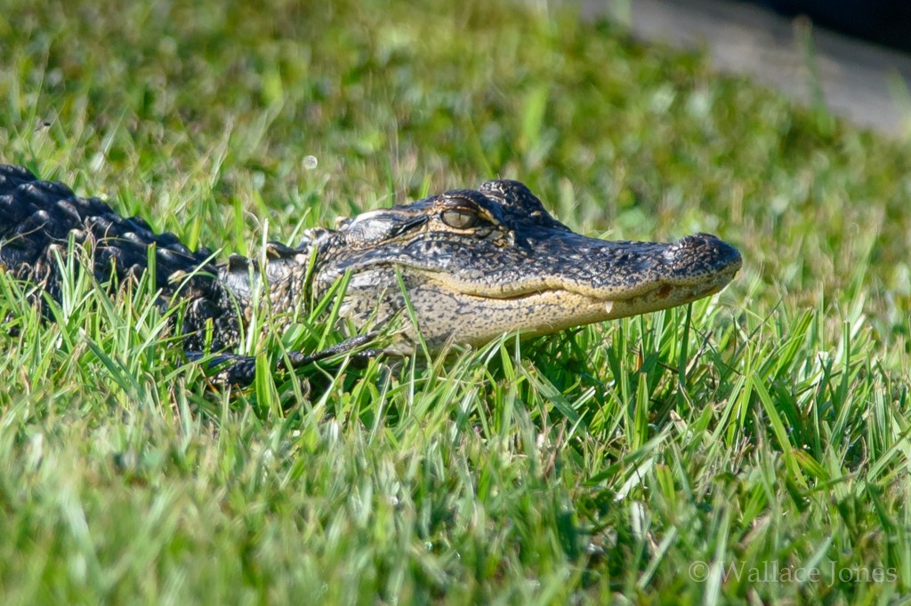 A young American Alligator has already learned humans don’t represent a threat. This is a very dangerous trait. If he ever leaves the park, he may discover humans with different attitudes. Humans who don’t understand wild animals are likely to approach too close for a photograph or, worse, toss the animal a snack. Injury to both parties could result. (To be clear, we were some distance from this alligator and the photo was taken with a 600mm telephoto lens and then cropped further so it may seem we were much closer.)