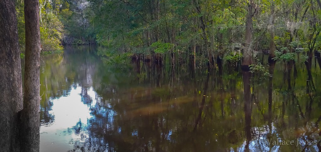 Our current location at the Mosaic Peace River Park offers a small network of boardwalks crisscrossing a swampy area which leads to the banks of the Peace River. The dense canopy of mostly cypress trees blocks much of the sunlight resulting in that “dark swamp” environment. It also means some pretty low light for attempting photography.