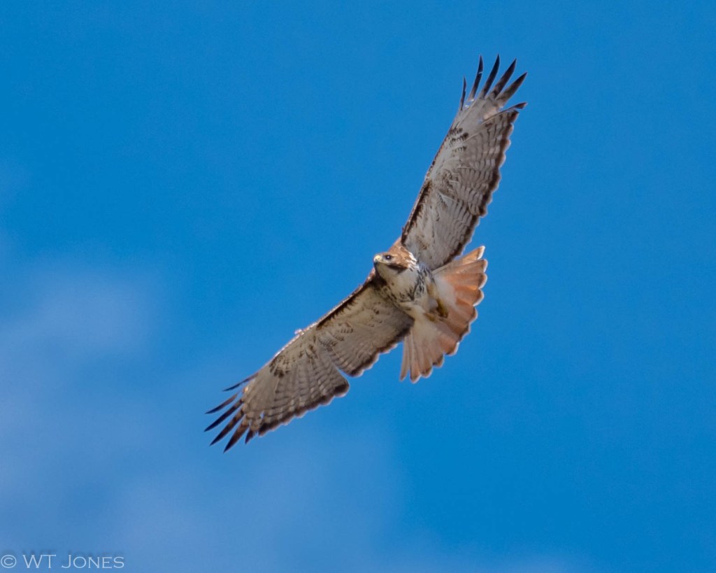 In Florida, our largest breeding Buteo is the Red-tailed Hawk. This magnificent raptor has a wingspan of up to 52 inches (133 cm). Masters of the air, they can spot movement from great altitudes and silently swoop down to snatch a rabbit with incredible speed. Gini once glanced up from reading to see one grasp a squirrel from atop our fence. She had the additional joy of watching the big bird clean the mammal, eviscerate it and consume virtually the whole thing! Who needs the telly?