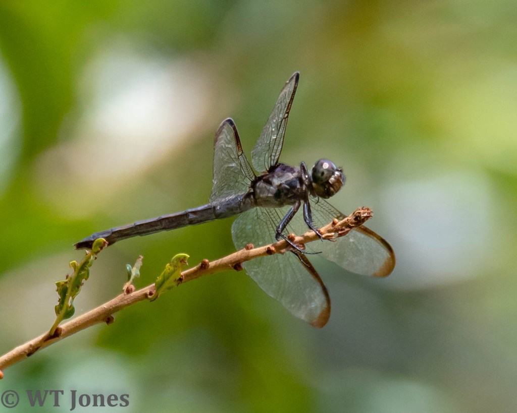 We have three species of large dark members of the King skimmer family which are common in our area. The Bar-winged, Great Blue and Slaty Skimmers. This is a female Slaty Skimmer (Libellula incesta).
