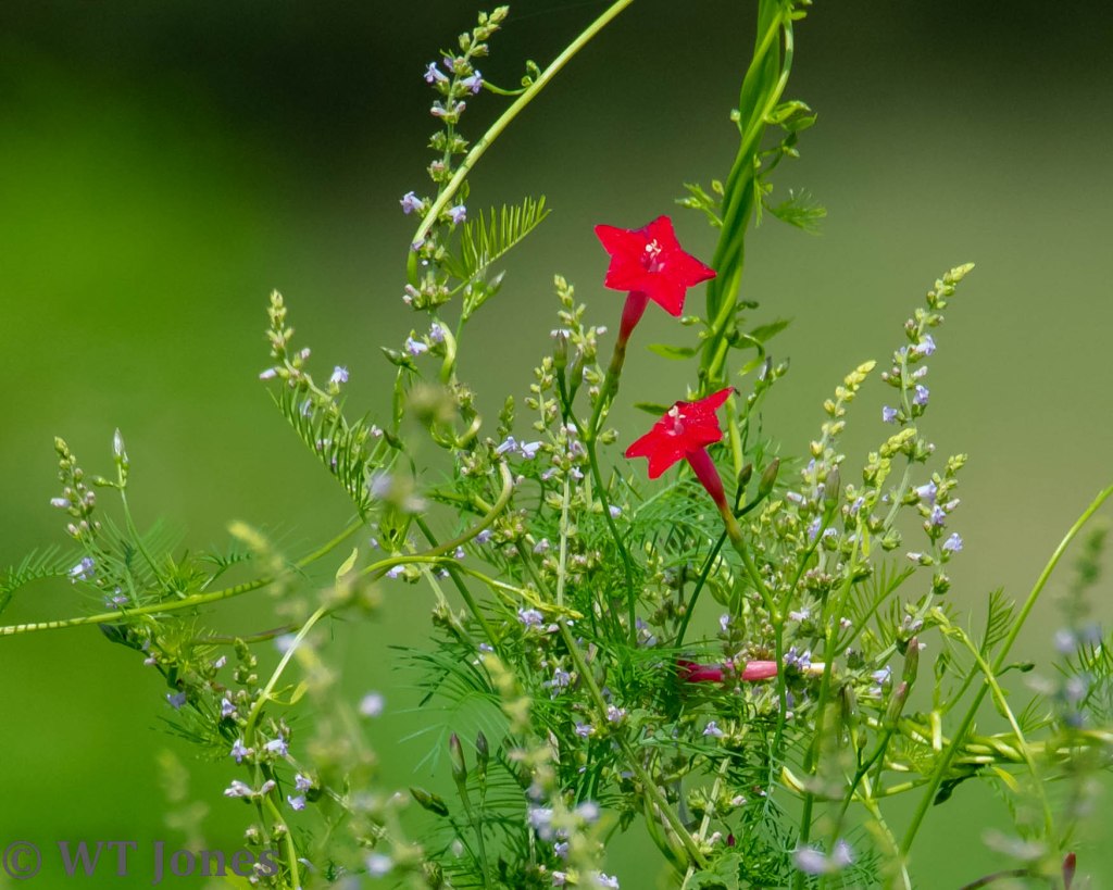 One of the many members of the morning-glory family is the small-flowered Cypressvine (Ipomoea quamoclit). I believe it is not native to Florida and the feathery leaves certainly don’t resemble those of others in the family.