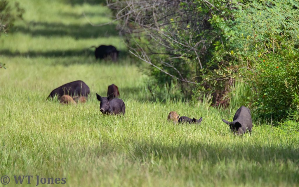 The hogs in the photo were all young and younger. “Mama” remained in the brush but was easily twice the size of the largest in the image. They plow up large tracts and the state has traps all over trying to cull them. A truly Sisyphean task.