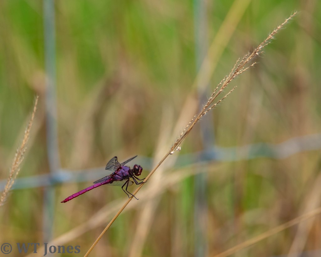 Our birding patch has a large open field with tall grass and is bordered by hardwood trees. Summer rains keep parts of the field in standing water offering the perfect habitat for the striking Band-winged Dragonlet (Erythrodiplax umbrata).