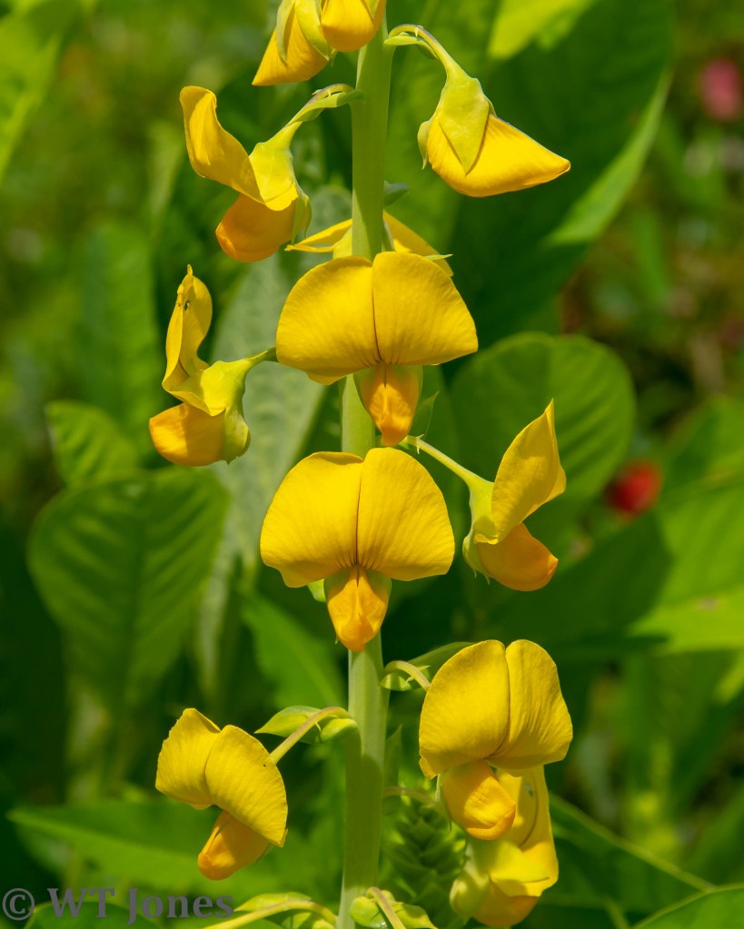 Pretty but deadly. Showy Rattlebox (Crotalaria spectabilis) has wonderful yellow blooms that brighten the outdoors. This particular species of Crotalaria was introduced from Africa and Asia to take advantage of the nitrogen-fixing nature of the root system. Unfortunately, all parts of this plant proved toxic to livestock, especially horses. Fortunately, most animals avoid it unless they are really hungry.