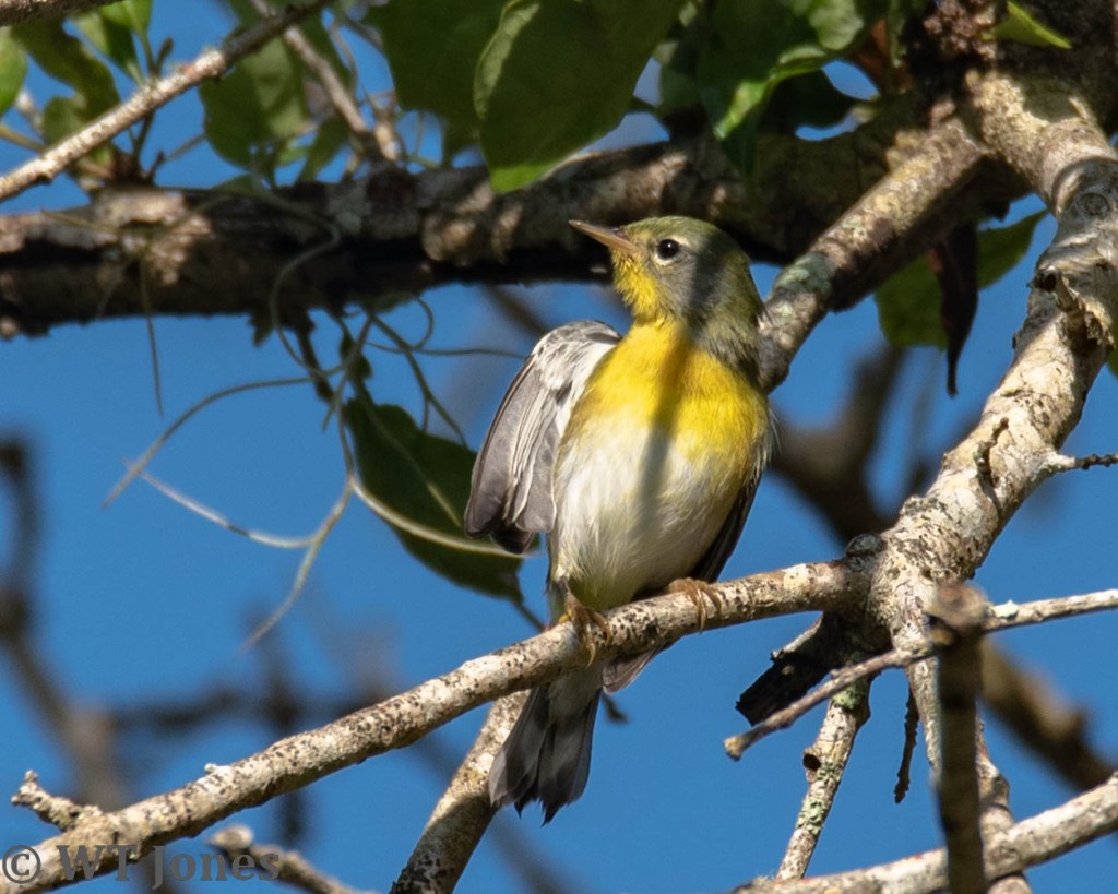 The bright male Northern Parula points us in the direction of a pretty flower. This warbler species is already diminishing in number as fall progresses and will soon almost disappear until spring.