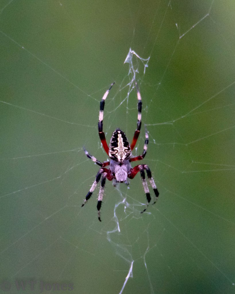 This has been the year of the Red-femured Spotted Orbweaver (Neoscona domiciliorum). I don’t know if it’s because they’re more abundant this year or if we just happened to have been in the right spots at the right time.