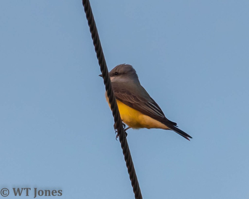 • We keep hoping our visit to that winter roost will find the birds perched on something other than the ubiquitous utility wires. That setting sun sure lit up the salmon color of the Scissor-tail!