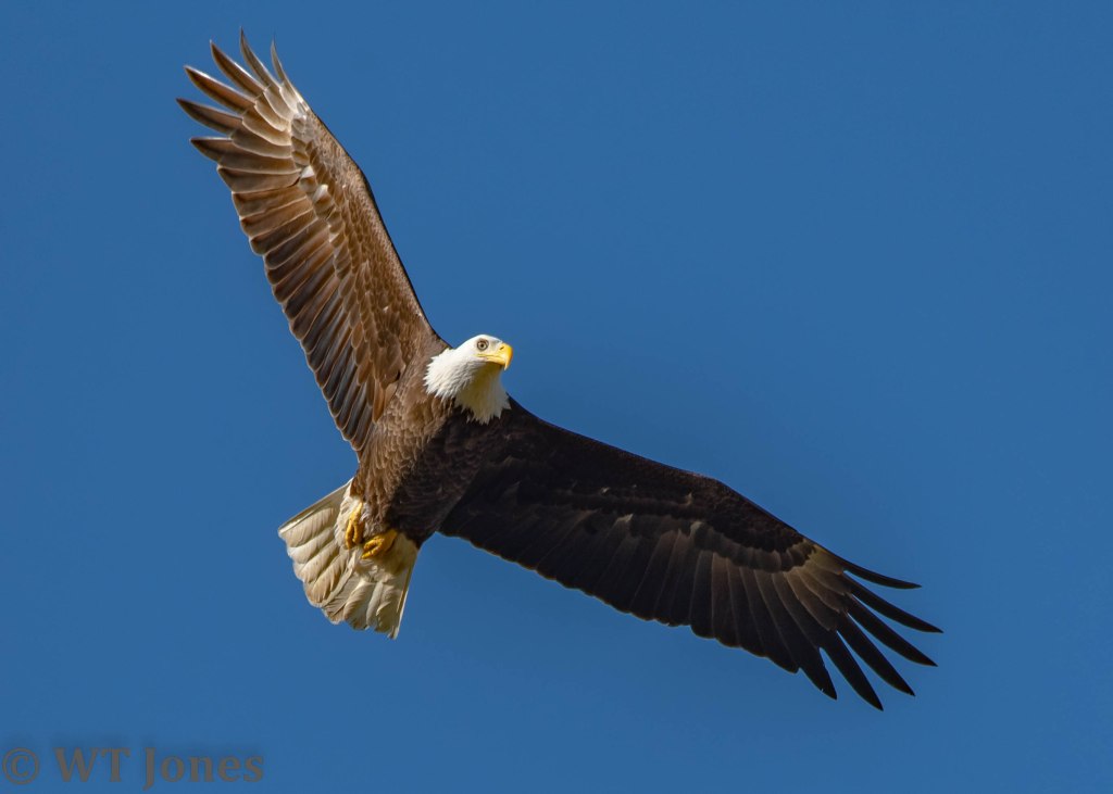 A late-day sortie by an adult Bald Eagle brought her overhead to check us out. Pretty spectacular raptor at any angle.