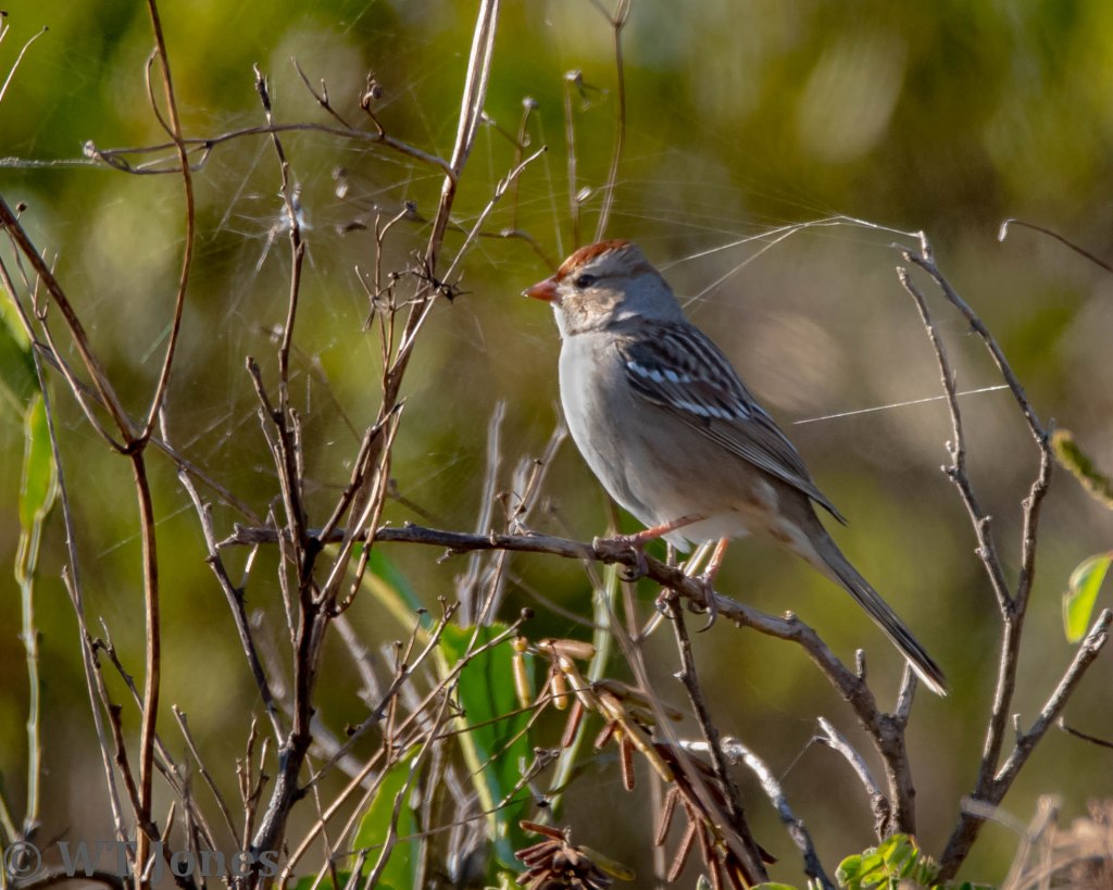 Adult White-crowned Sparrows have distinctive black-and-white head patterns. This is a first year bird and shows a brown and gray head pattern. Only a few migrants make it to Florida each year.