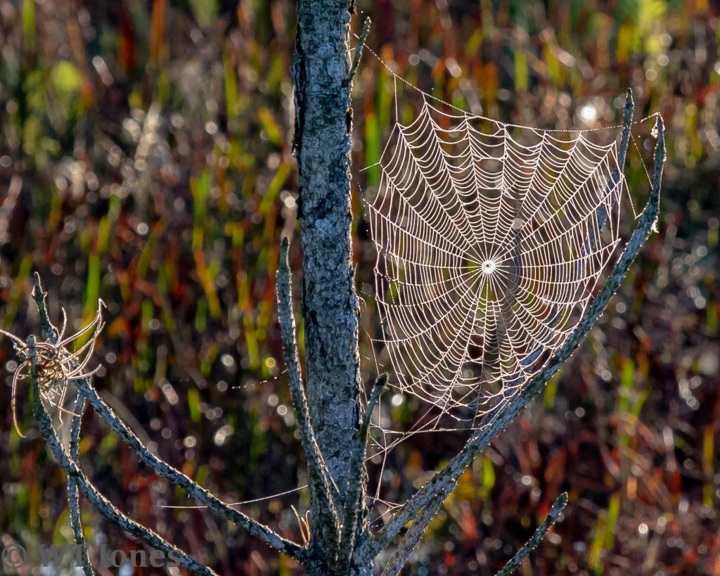 It seemed spider webs adorned every available stalk of grass and tree limb.