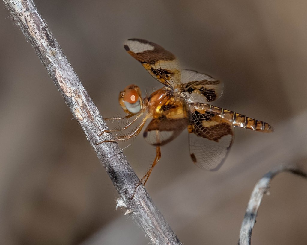 Beauty can often be found in small packages. One of the smallest dragonflies in North America, the Eastern Amberwing (Perithemis tenera), is a prime example. They fly with their legs dangling beneath in the hope a hungry predator will mistake them for a wasp and decide to leave them alone.