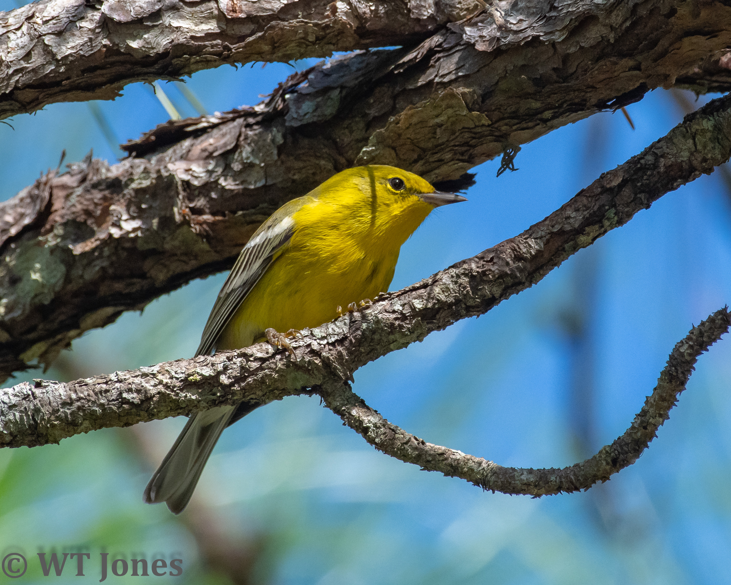 Tops of longleaf pine trees were adorned with bright yellow decorations all over the woods. Pine Warblers jumped, ran and flitted along the branches scooping up whatever they could find as they fueled up for the trip further south. Many of these lovely warblers will remain here throughout the winter. That’s just fine with us.