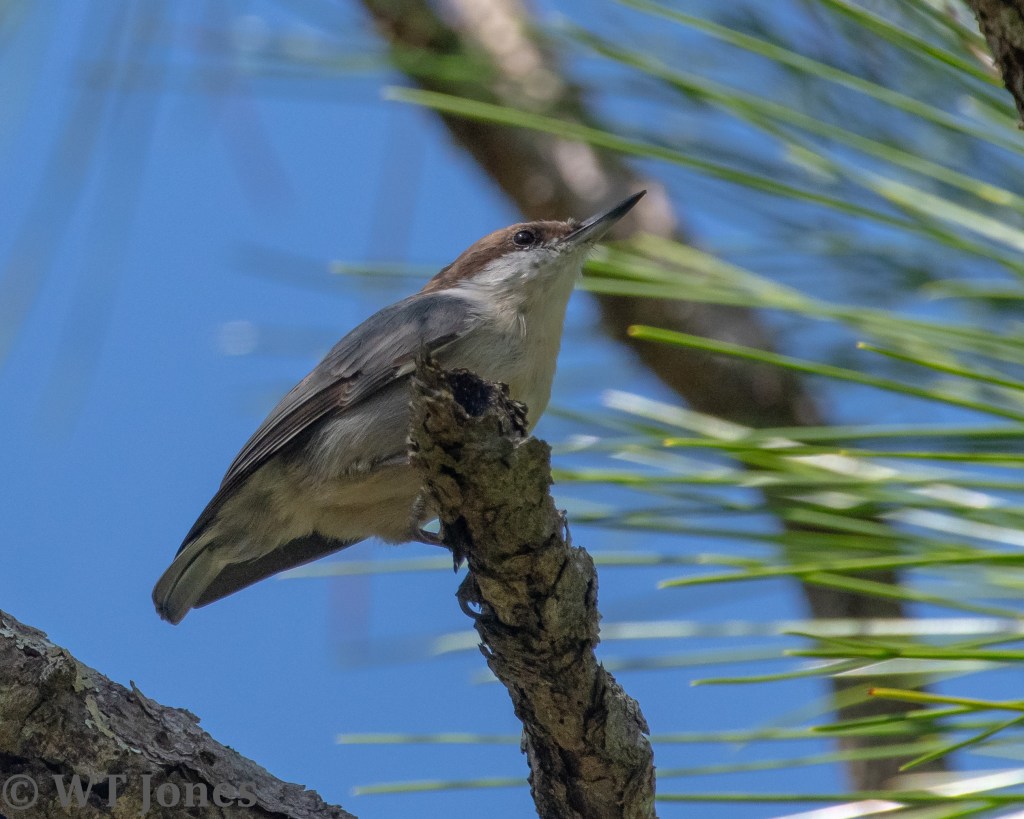 Pugnacious. Some small birds such as wrens just seem to have a whole lot of “attitude”. Brown-headed Nuthatches are like that. When one spotted us, he squeaked his warning and we were quickly surrounded by the little long-beaked fluff balls. Watching them run head-first down a tree trunk is always fun.