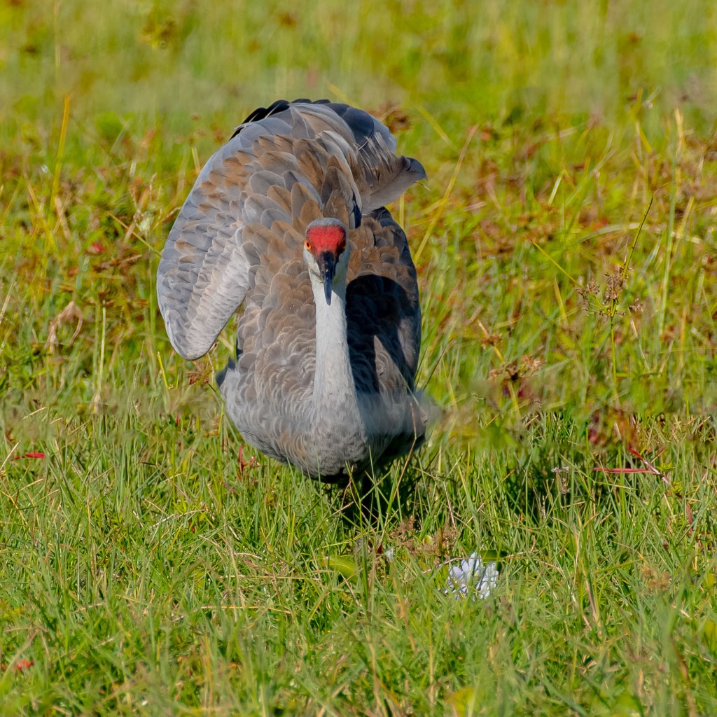 That’s a good shot of the forward-looking sandhill crane with its prominent red.