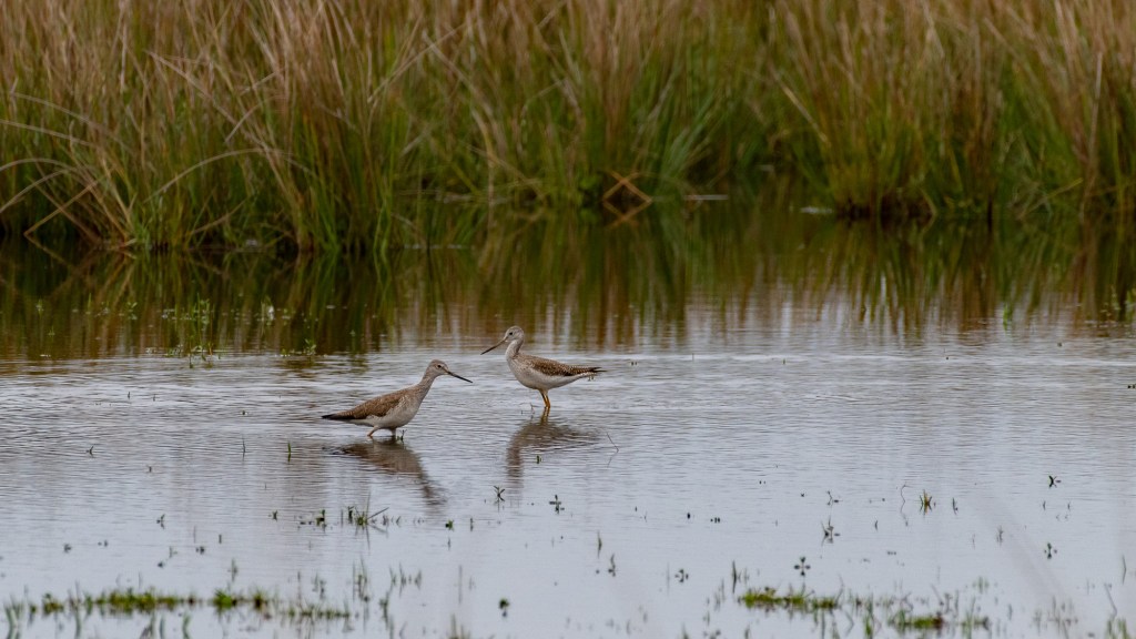 Unlike their Dowitcher cousins, this pair of Greater Yellowlegs politely called (incessantly) to allow us a proper identification.
