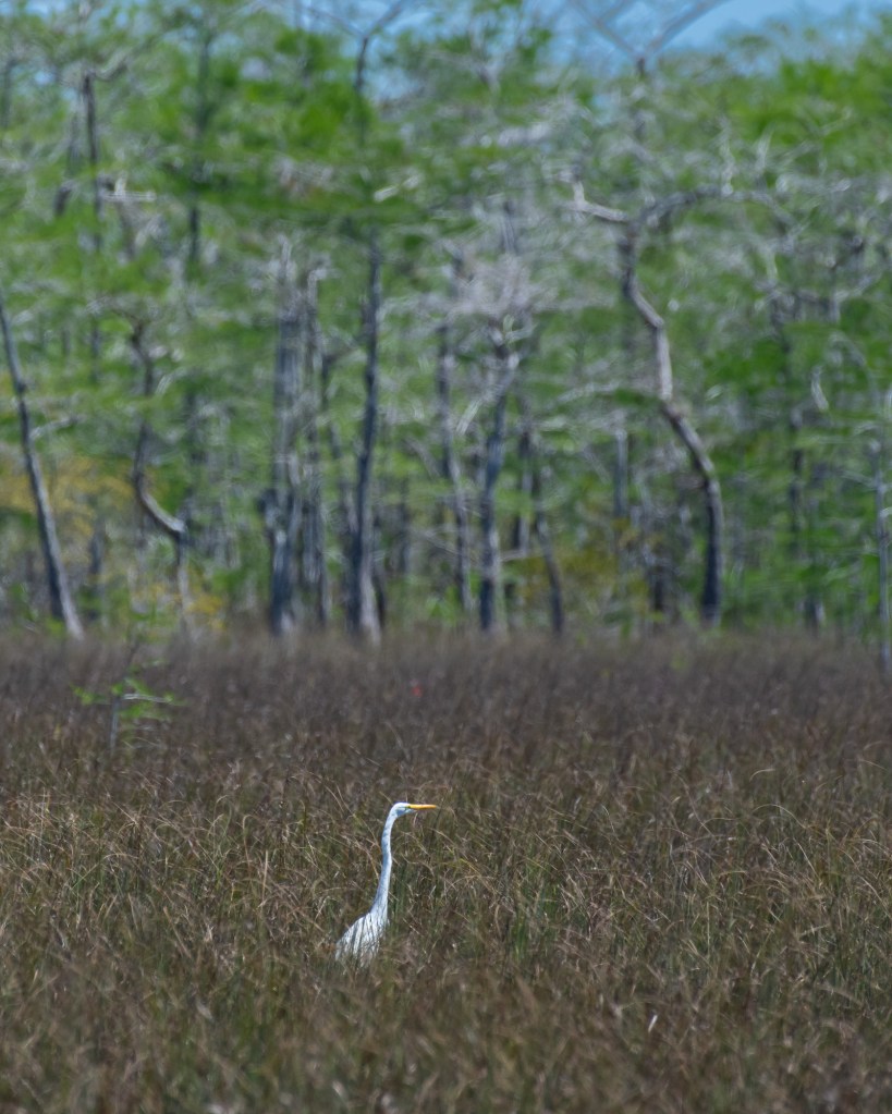 Even a large white bird such as this Great Egret can almost vanish in the vast swamp of sawgrass and reeds.