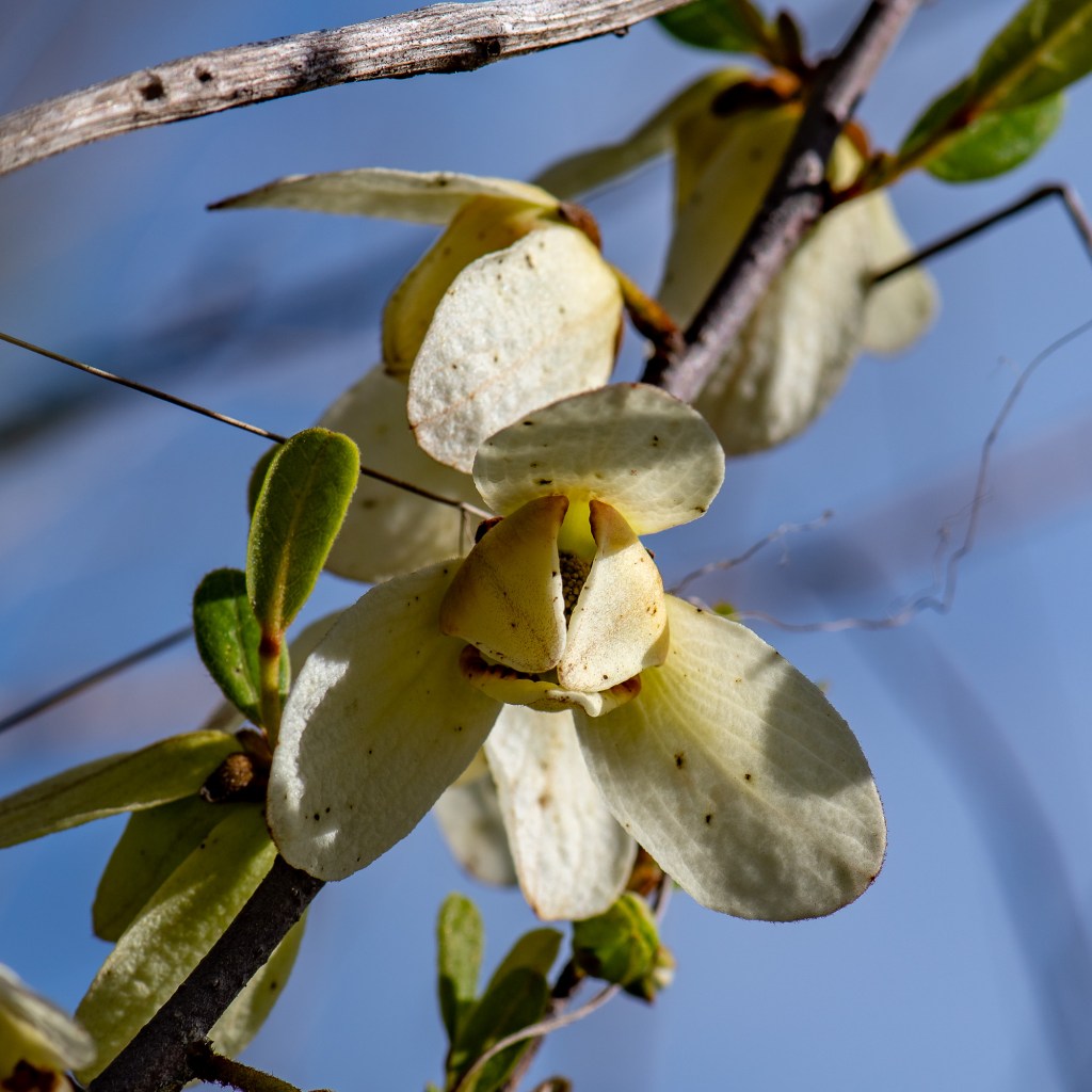 Fruits of the Netted Pawpaw (Asimina reticulata) will soon appear and just as they ripen, will quickly disappear. Wildlife enjoy these small fruits, sometimes called “custard apples”, and you’ll have to be quick to find them. “Netted” refers to the appearance of the leaves.