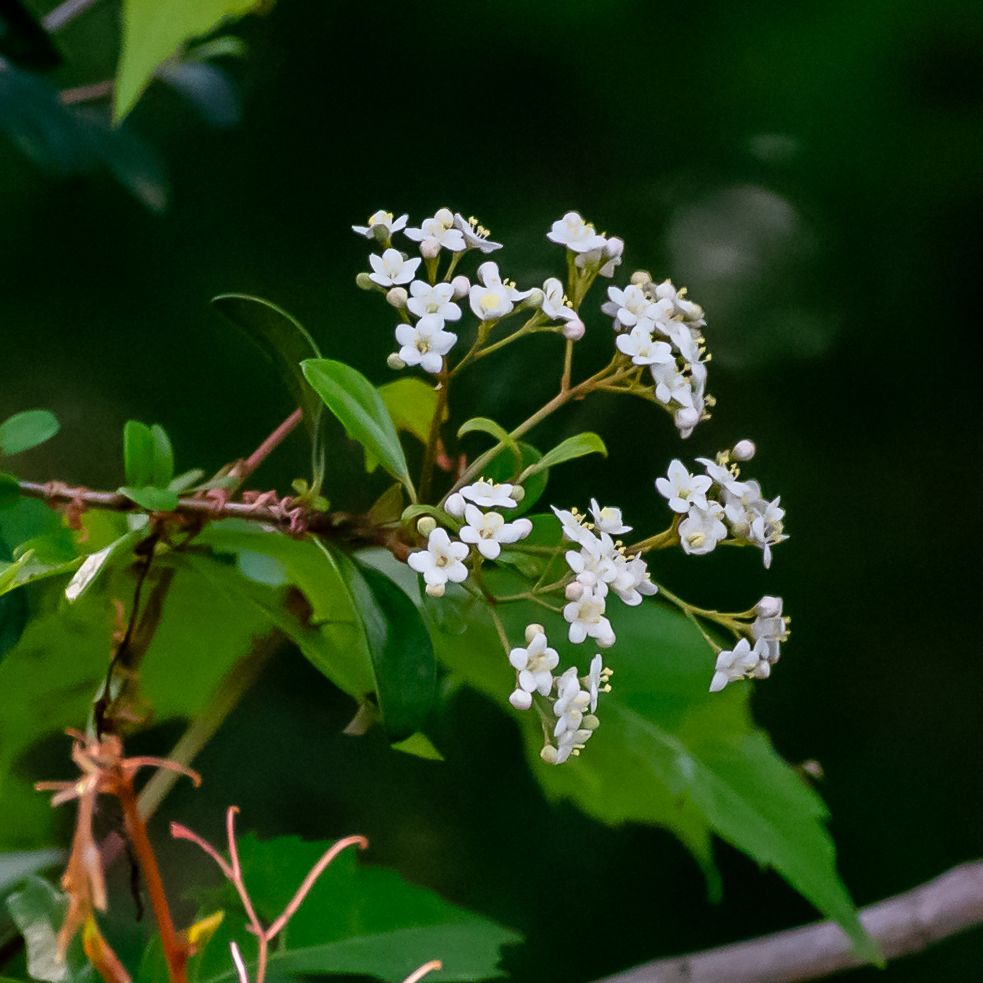 Sometimes appearing as a medium-sized shrub, Walter’s Viburnum (Viburnum obovatum) can attain a height of more than 20 feet and has the appearance of a full-sized tree. The blooms are profuse and have a wonderfully sweet aroma.