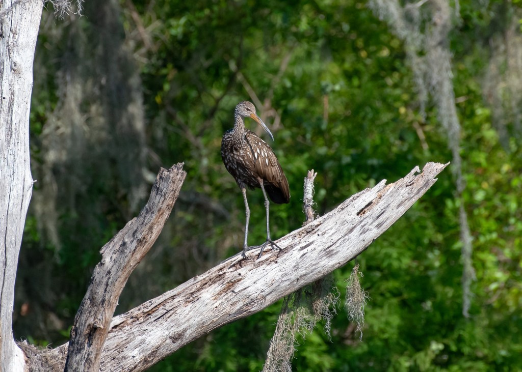Escargot hunter. Limpkins are the only member of their genus. Watching them use their scissor-like bill to extract an Apple Snail from its shell is fascinating.