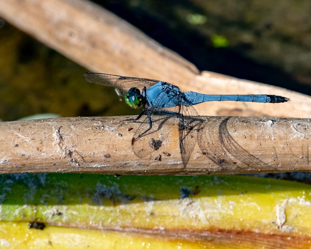 This male Eastern Pondhawk (Erythemis simplicicollis) may appear to be relaxing. If another insect flies by, he’ll become active in a hurry.