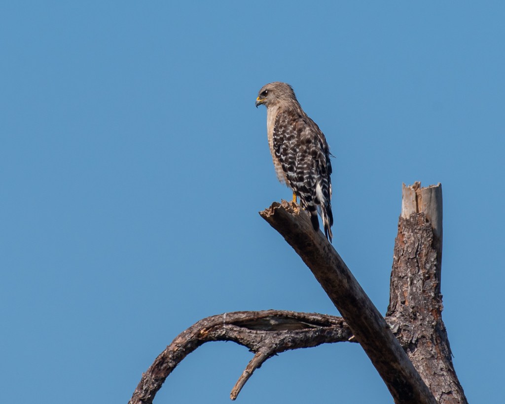 Our most common raptor is the Red-shouldered Hawk. Their sharp eyes don’t miss much. Especially lizards and frogs.
