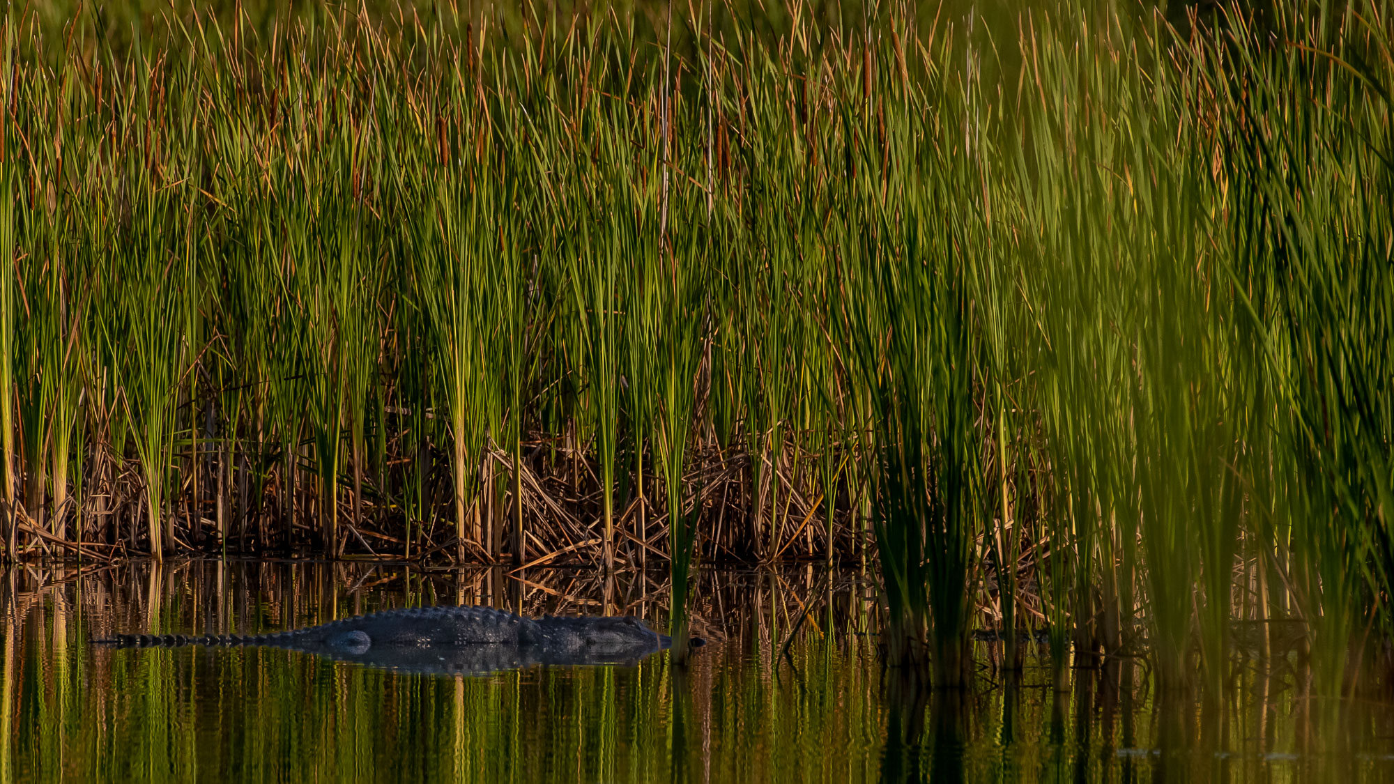 That ‘gator wouldn’t mind finding either one, although most Great Blue Herons might try to eat the big reptile just to see if could be done.