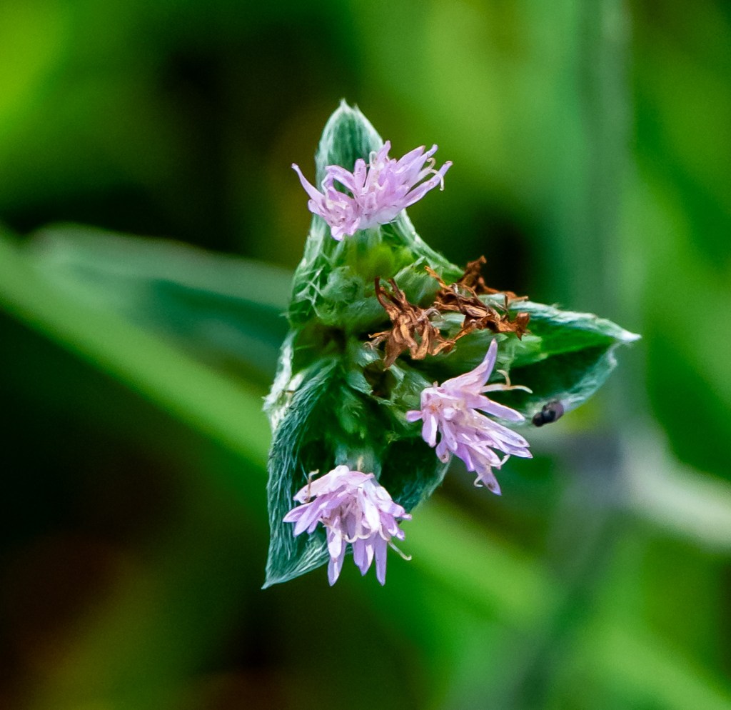 Panicled Ticktrefoil (Desmodium paniculatum). Long name for a very small flower. It forms fairly dense undergrowth which is fun to slog through. We grew up calling it “beggarlice”. Some call it “velcro plant”. The seeds love to stick to your clothing which provides endless hours of fun when you return home and she says you have to remove all those things before tossing your pants into the laundry.