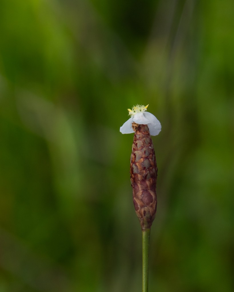 I know. It’s not yellow. We are not in Carolina. Those crazy botanists. No matter what it’s called, Carolina Yellow-eyed Grass (Xyris caroliniana) is delicate and wonderful to behold. We’ll try to find an actual yellow variety soon. But we still won’t be in Carolina.