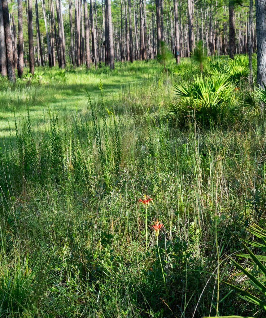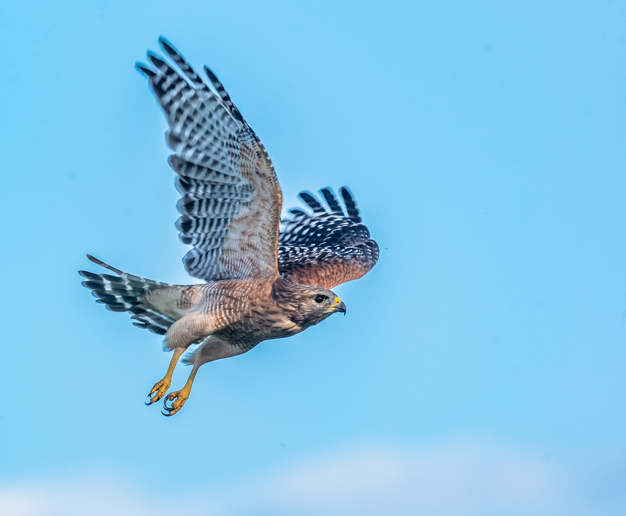 Red-shouldered Hawks are quite common throughout Florida. This handsome adult launched from a small pine tree with its eye on early supper.