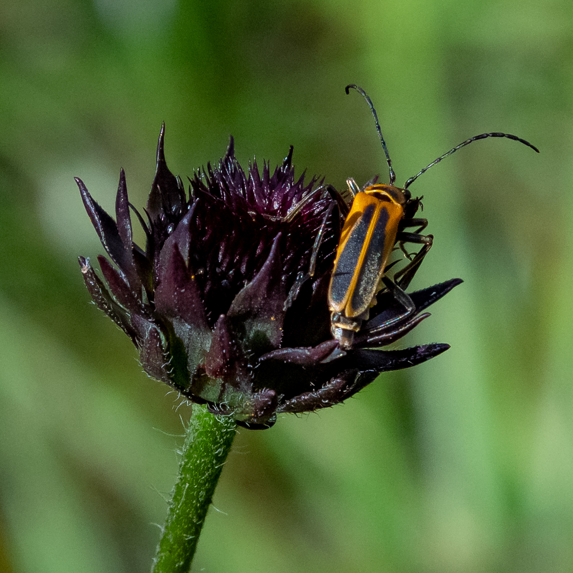 Rayless Sunflower (Helianthus radula) and Margined Leatherwing Beetle (Chauliognathus marginatus)