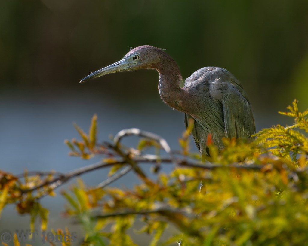 The sun is now bright in the morning sky. A Little Blue Heron perches in a cypress tree to preen and think about what to have for breakfast. Fish? Frog? Crawdad? Decisions, decisions.
