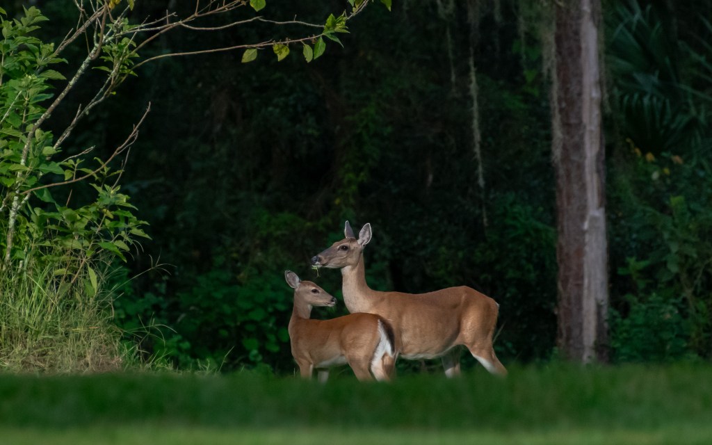 Just before sunset, clouds along the horizon lifted just a bit to spotlight a White-tailed Deer and her fawn. A perfeclty delightful end to a late day in the woods.