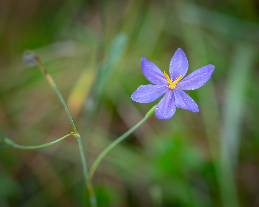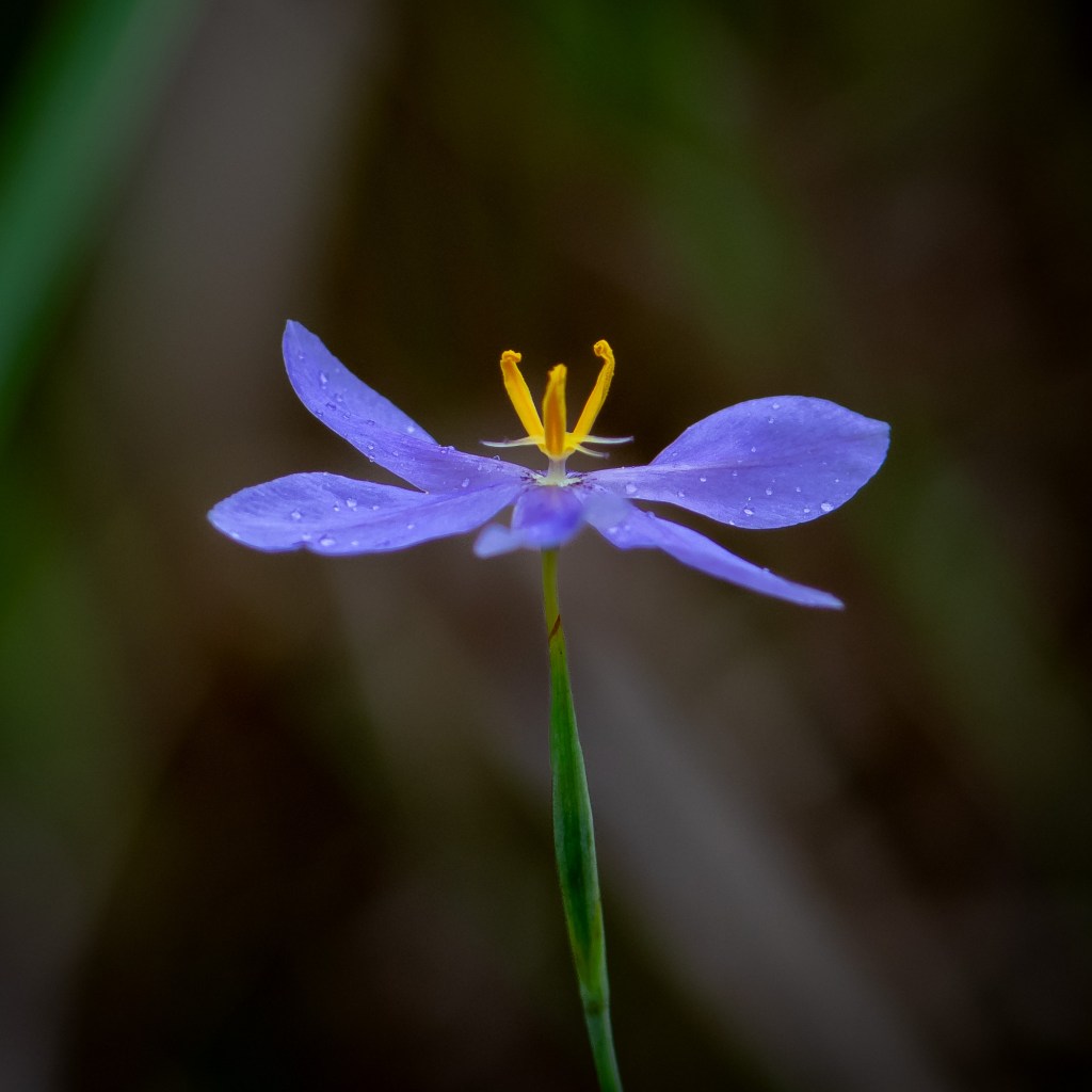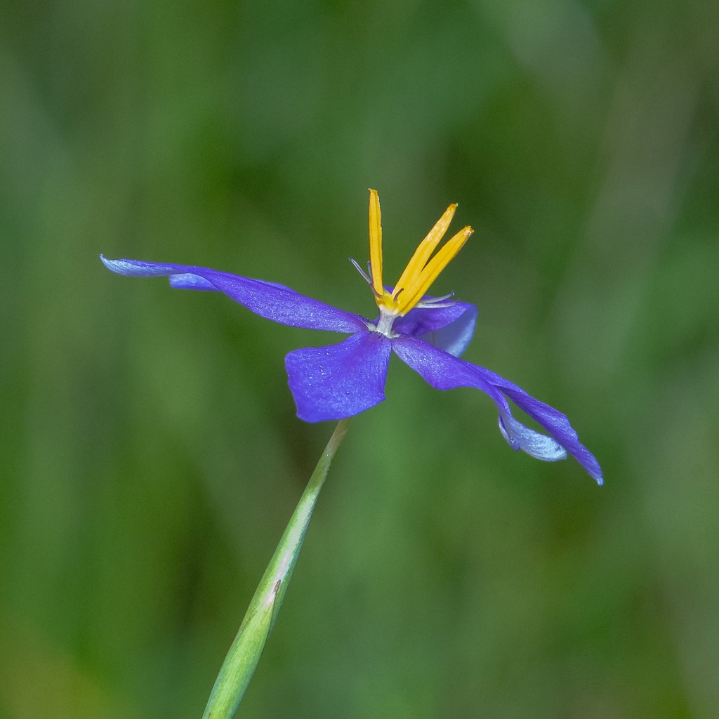 Celestial Lily (Nemastylis floridana). The blue flowers are 1-1.5 inches wide, consist of six petals and are borne on thin grass-like stalks. The USDA calls this the Fallflowering Pleatleaf. I’ll stick with its more heavenly common name. This plant likes open, sunny wetlands found in or near pinelands. It is found nowhere on earth outside of Florida and is listed as an endangered species.