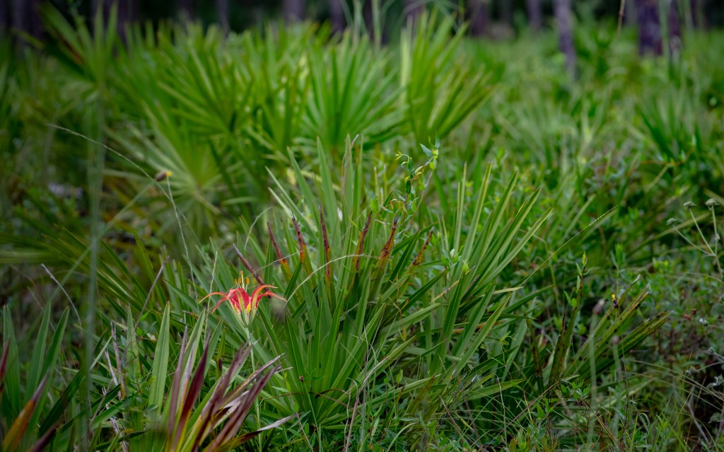 A couple of weeks ago, Gini and I began searching for a favorite bloom of fall in our area, the Pine Lily, also known as Catesby’s Lily. Although not a rare species, it is not exactly common and is pretty picky about where it grows. It likes to keep its feet moist and loves the pine flatwoods and savannahs. It can be found in the southeastern coastal plain states.