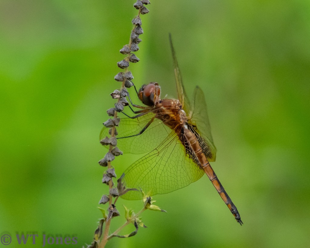 Early in the morning, before the sun dries its golden wings, a Hyacinth Glider (Miathyria marcella) glistens. Soon, it will be difficult to find one perched as they seem to remain in flight indefinitely.