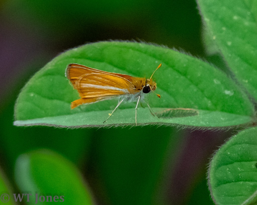 Smallest of the North American skipper butterflies, a Southern Skipperling (Copaeodes minima) greets the rising sun from its lofty leafy lookout.