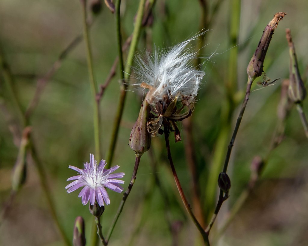 We found a new plant! (For us.) Grassleaf Lettuce (Lactuca graminifolia) is a member of the Aster family and can grow to three or four feet tall. The lovely lavender blossoms caught Gini’s attention immediately, as that’s her favorite color.