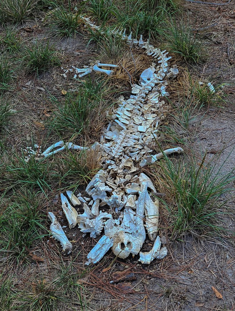 We came across an unusual sight. Likely the result of poachers as Alligator hunting season is August-September. My lovely bride is still mad ’cause I wouldn’t let her bag up the bones so she could spread ’em out on the living room floor and put him back together again. (That’s my Florida Woman!)