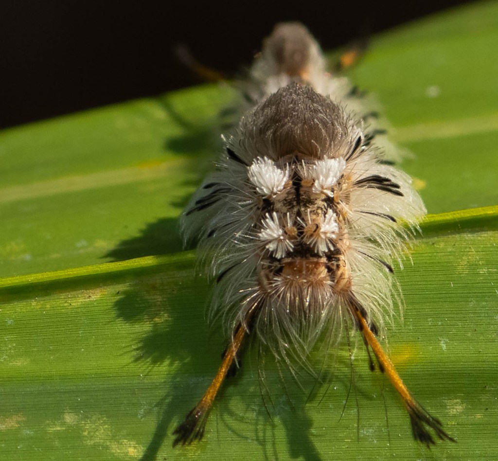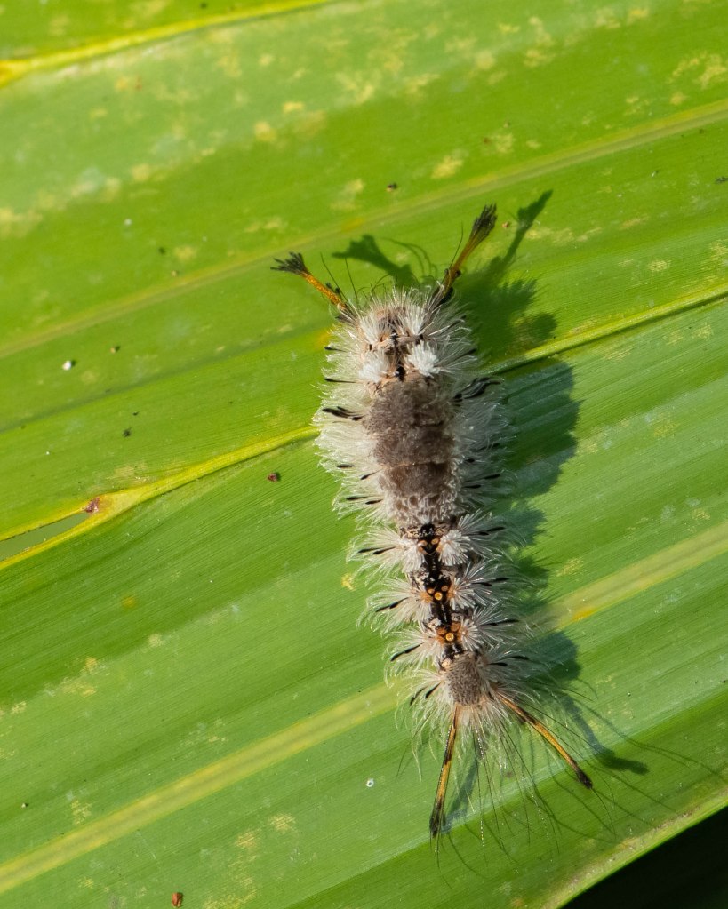 Resting on a Sawtooth Palmetto frond, a larva of the Southern Tussock Moth (Dasychira meridionalis) posed for a few candid portrait shots.