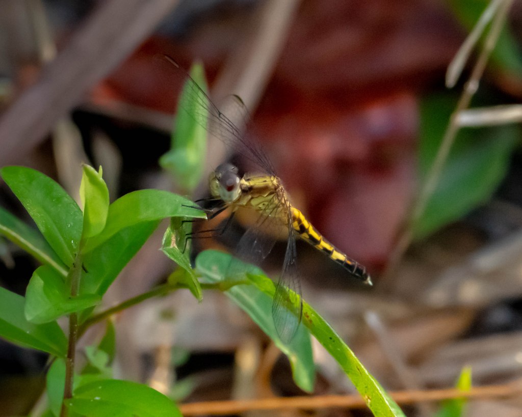 Good at staying under foot but not so good at posing for the camera, a small Little Blue Dragonlet (Erythrodiplax minuscula) kept pace with us for awhile.