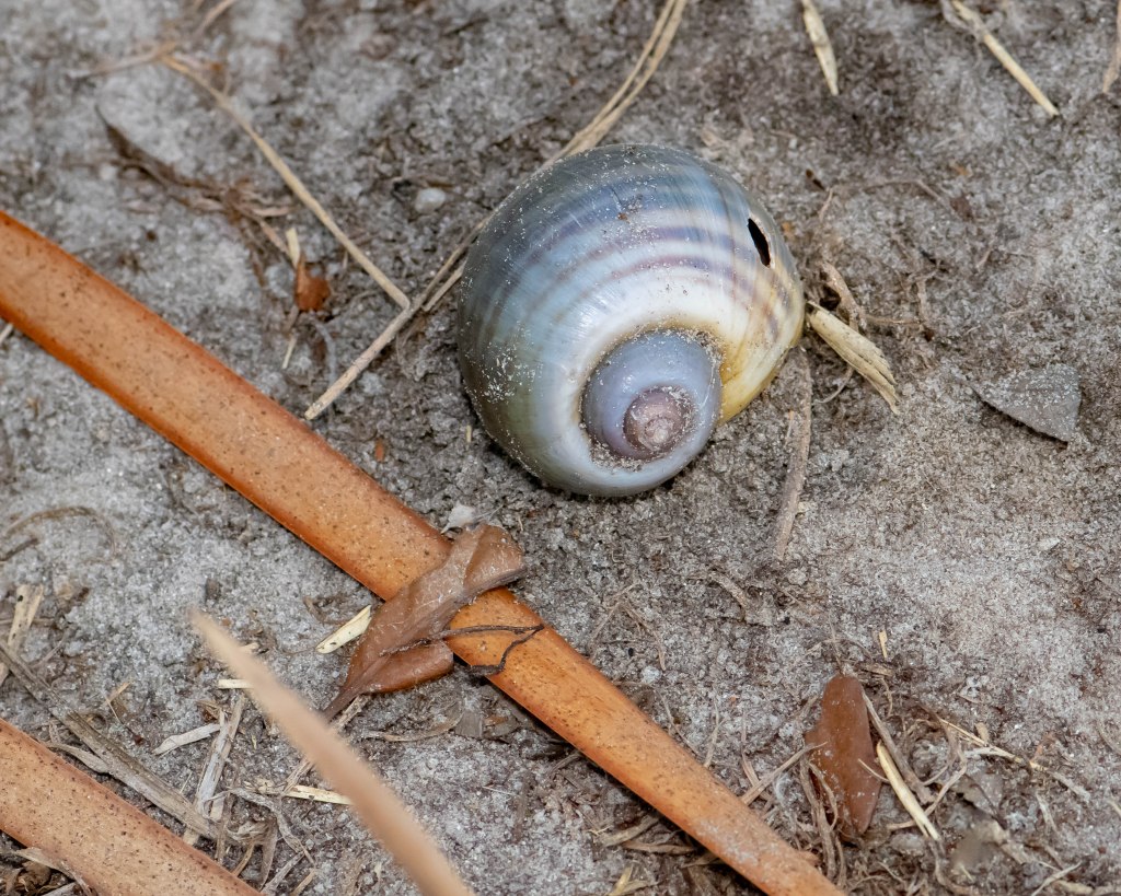 An Apple Snail (Pomacea spp.) shell. This is the shell which contains the favorite food of Limpkins and Snail Kites.