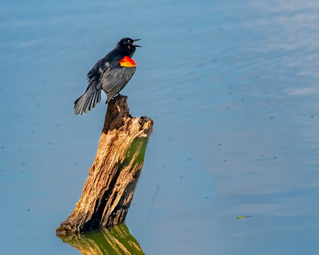 Red-winged Blackbird males are singing all over the place as breeding season is still in full swing.