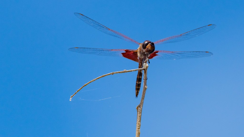 Today’s sentinel duty is performed by the ever-alert Red Saddlebags (Tramea onusta). With all those eyes, this attentive dragon doesn’t miss much.