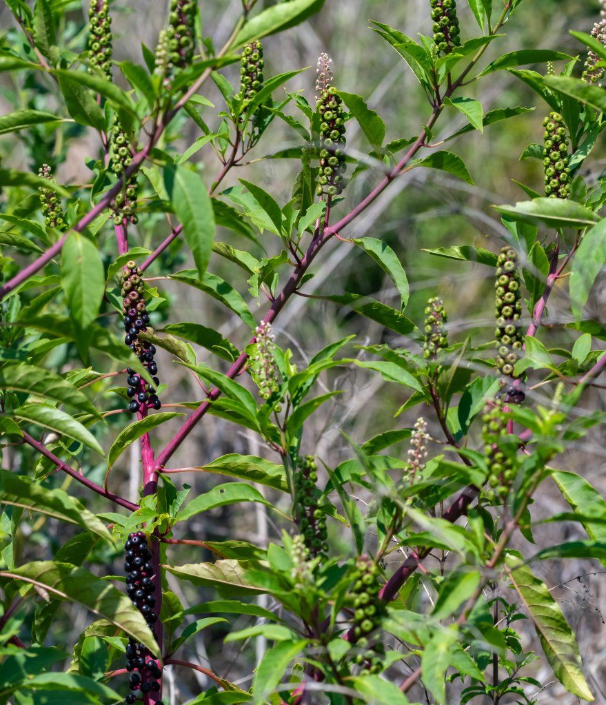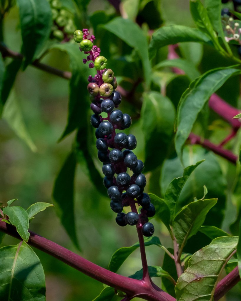 (Thanks to Jimbey and shoreacres for pointing out an important error!) The images below are of the American Pokeweed (Phytolacca americana). The berries of this plant are definitely toxic! Once again, when exploring the great outdoors, DO NOT TOUCH OR EAT ANYTHING YOU ARE NOT 100% POSITIVE IS NOT DANGEROUS!