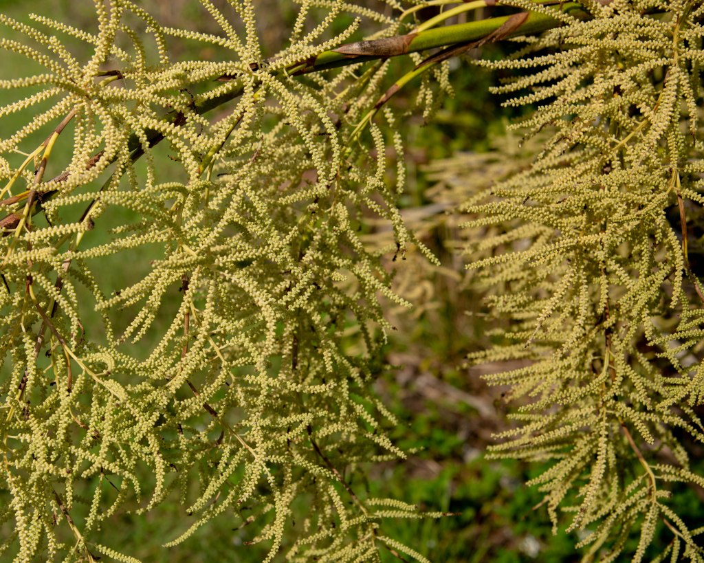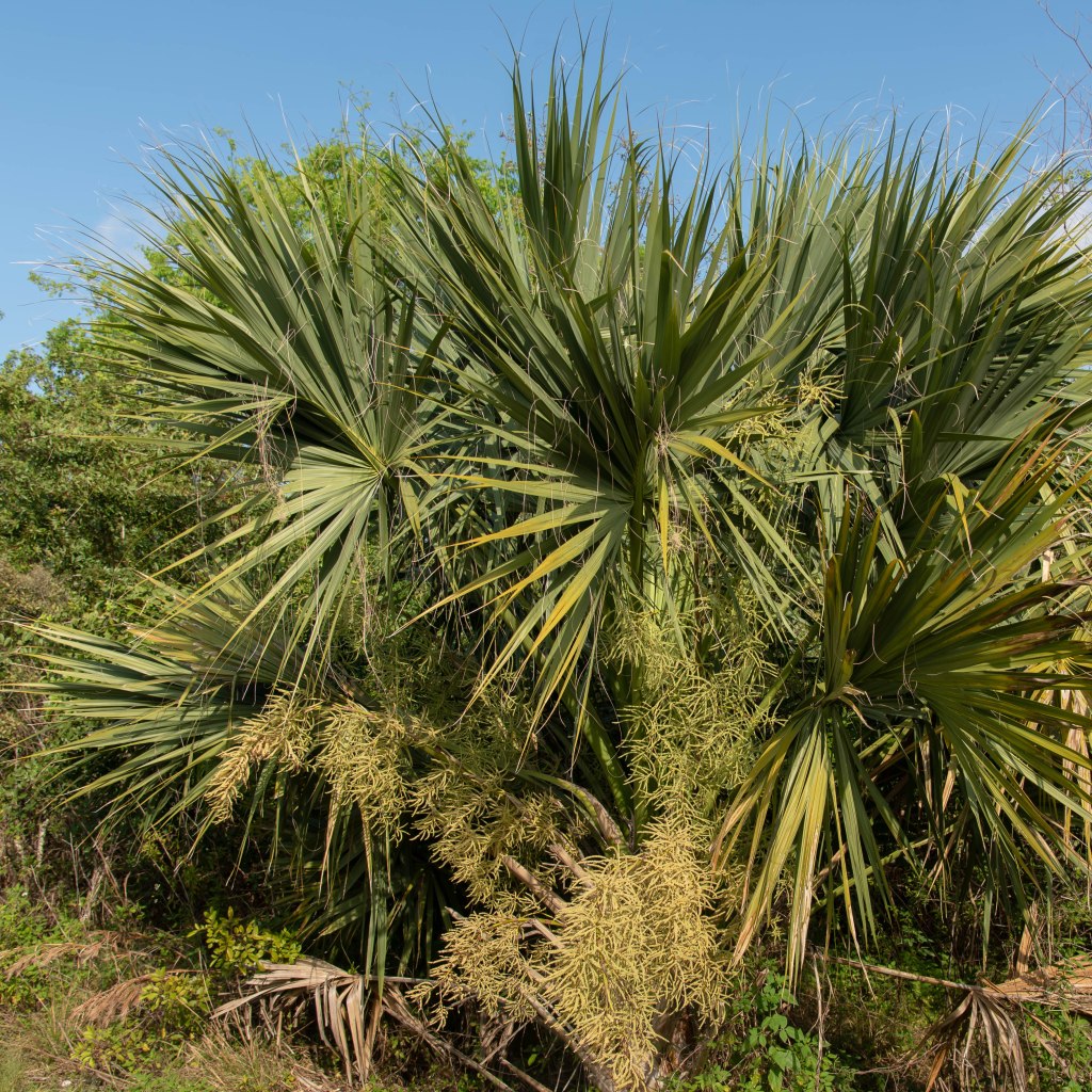 Both Gini and I grew up in central Florida and assumed the entire world was covered in Saw Palmetto (Serenoa repens) just like our forests were. As kids, we couldn’t have survived without the plant’s stems whittled to a point for roasting hot dogs and marshmallows. If there were no palmetto plants, where would rattlesnakes hide? The profuse buds will soon turn to small white flowers and the aroma during this time is overwhelming.