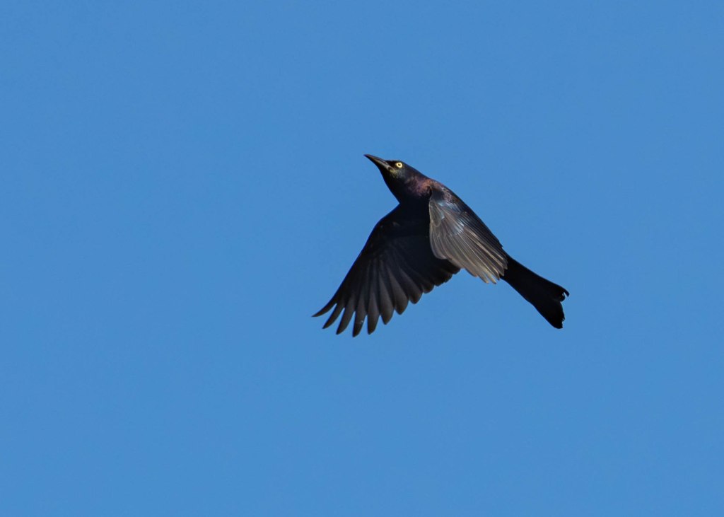 Just as we parked under the shade of a large oak tree for our brunch, a group of Common Grackles flew up from the nearby reeds. In this area, they are vastly outnumbered by their cousin, the Boat-tailed Grackle. A bright golden eye is diagnostic.